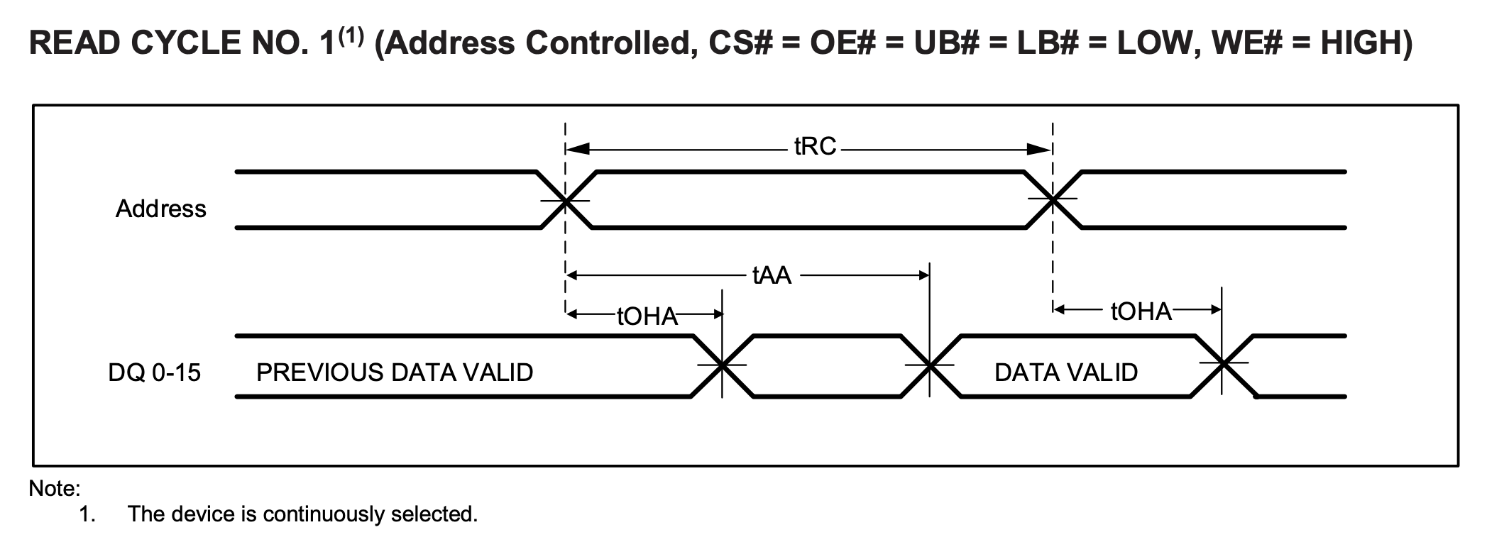 - \(t_{AA}\): address access time, the data is given after the address change in \(t_{AA}\) time, Max 10ns