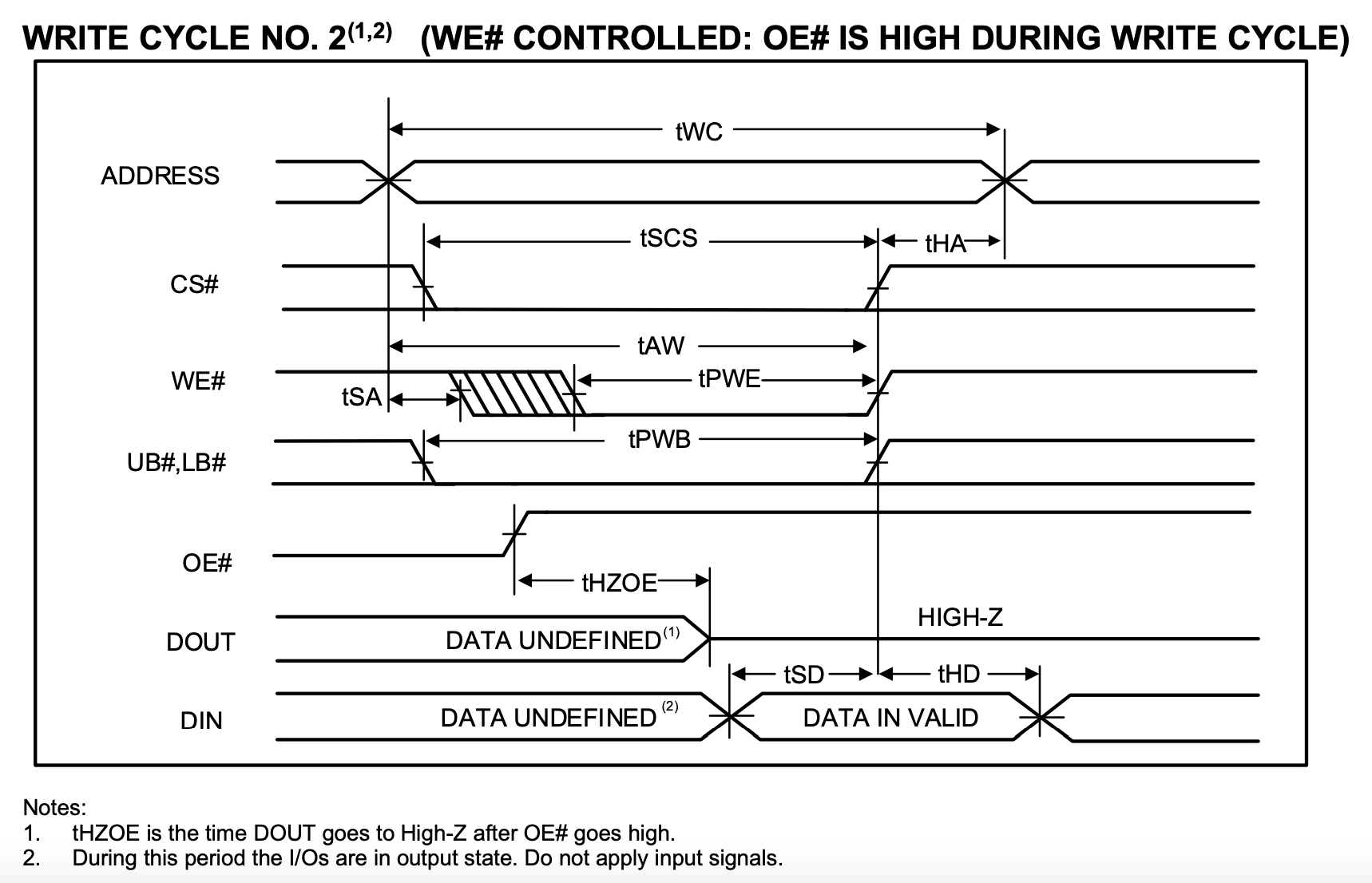WE#maintains 0, Min 8ns - \(t_{SD}\): Setup time of data relative to the rising edge of