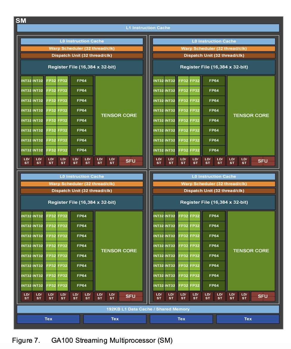 - 一个 SM 有 192 个单精度 CUDA Core,64 个双精度计算单元,32 个 SFU,32 个 LD/ST 单元