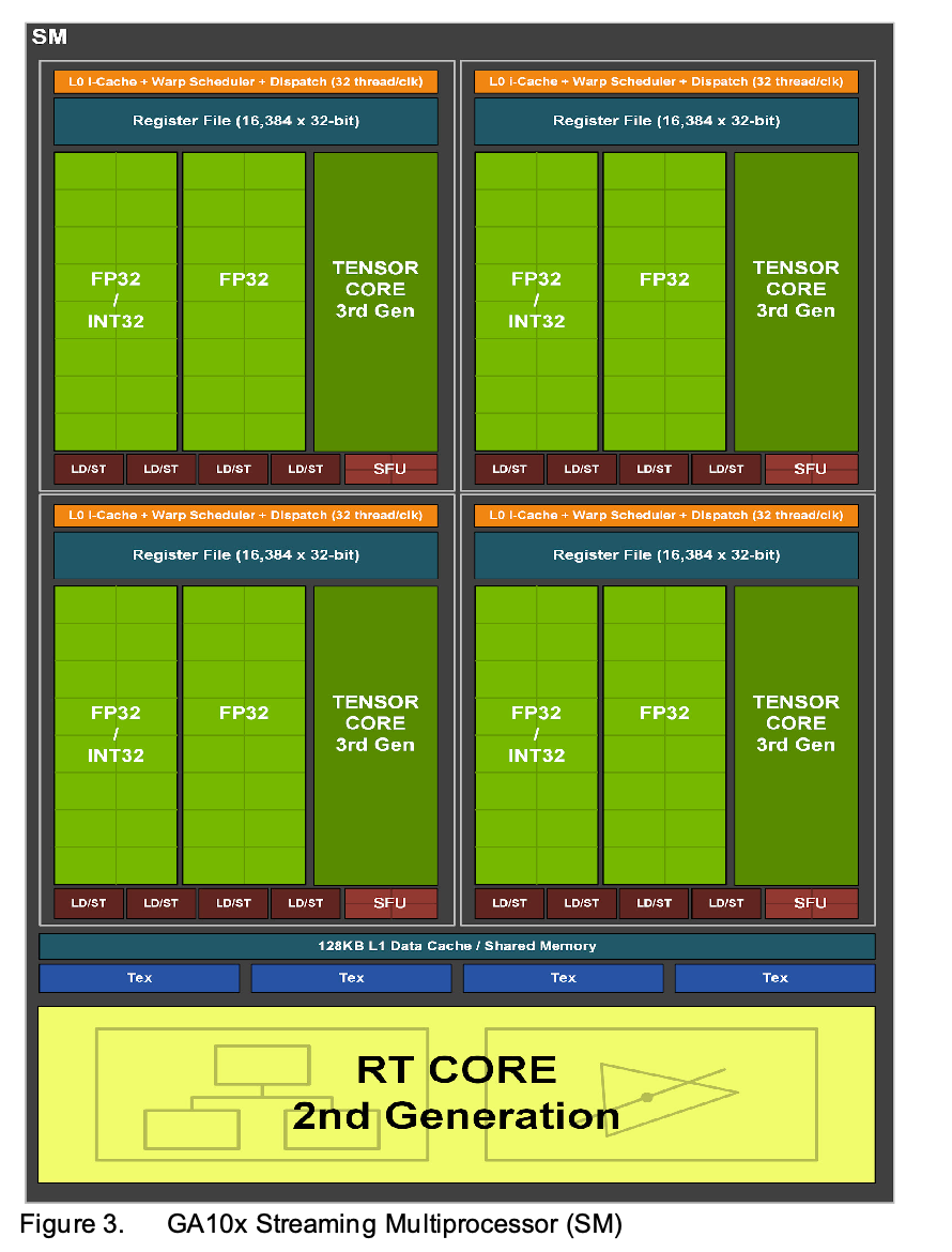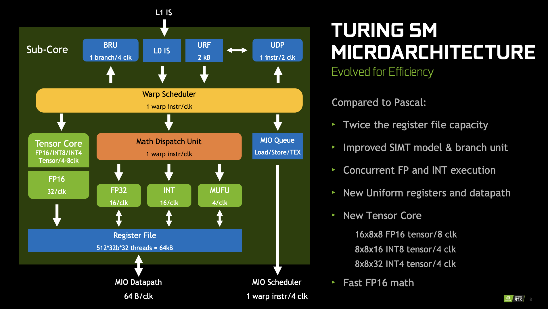 - 128 SP cores in 16 SMs; 每个 SM 内有 8 个 SP,所以 \(8 * 16 = 128\)