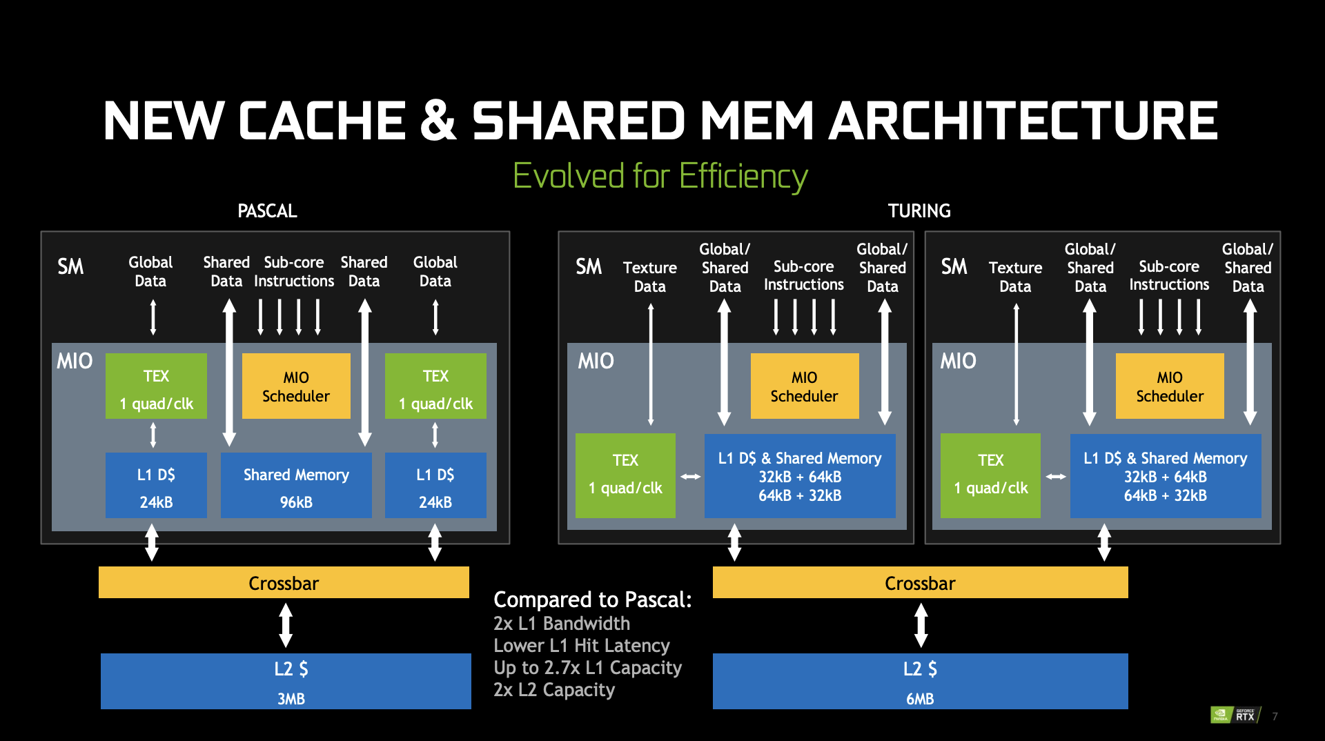 Maxwell 架构的 L1 缓存和 Shared Memory 不再共享,Shared Memory 独占 96KB,然后 L1 缓存和 Texture 缓存共享空间。根据 https://arxiv.org/pdf/1804.06826.pdf,Maxwell 架构每个周期每个 SM 可以读取 256 字节的数据,也就是说,每个 LD/ST unit 每周期可以读取 \(128 / 4 / 8 = 4\) 字节的数据。