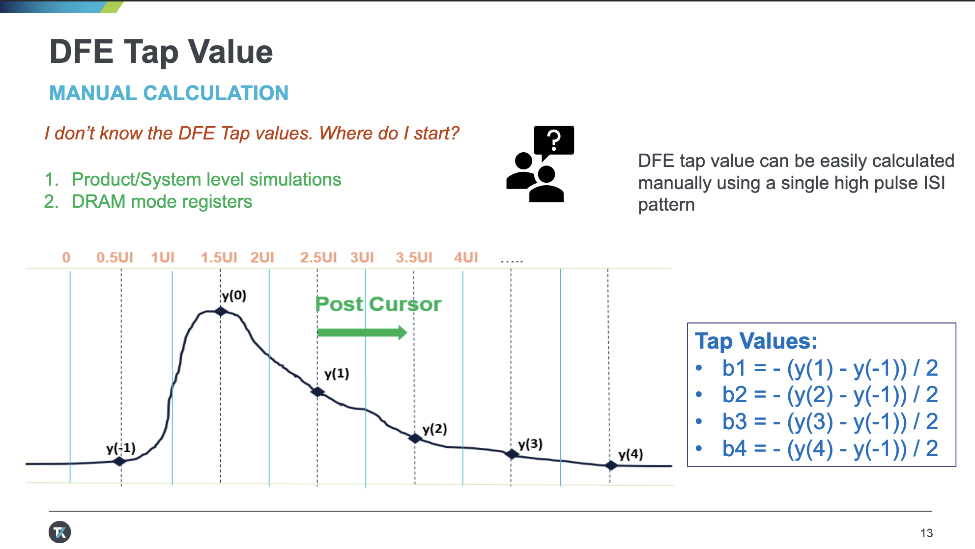 DDR5 supports a 4-Tap DFE, meaning it accounts for interference caused by the four most recent symbols on the current symbol, corresponding to four coefficients. To measure these four coefficients, during training, a pulse is first transmitted, and its response is observed. By continuously adjusting the coefficients, the interference imposed on subsequent symbols is mitigated.