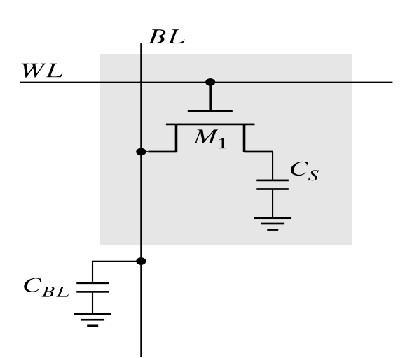 Data in DRAM is stored in capacitors. The internal structure of a typical 1T DRAM Cell is as follows: