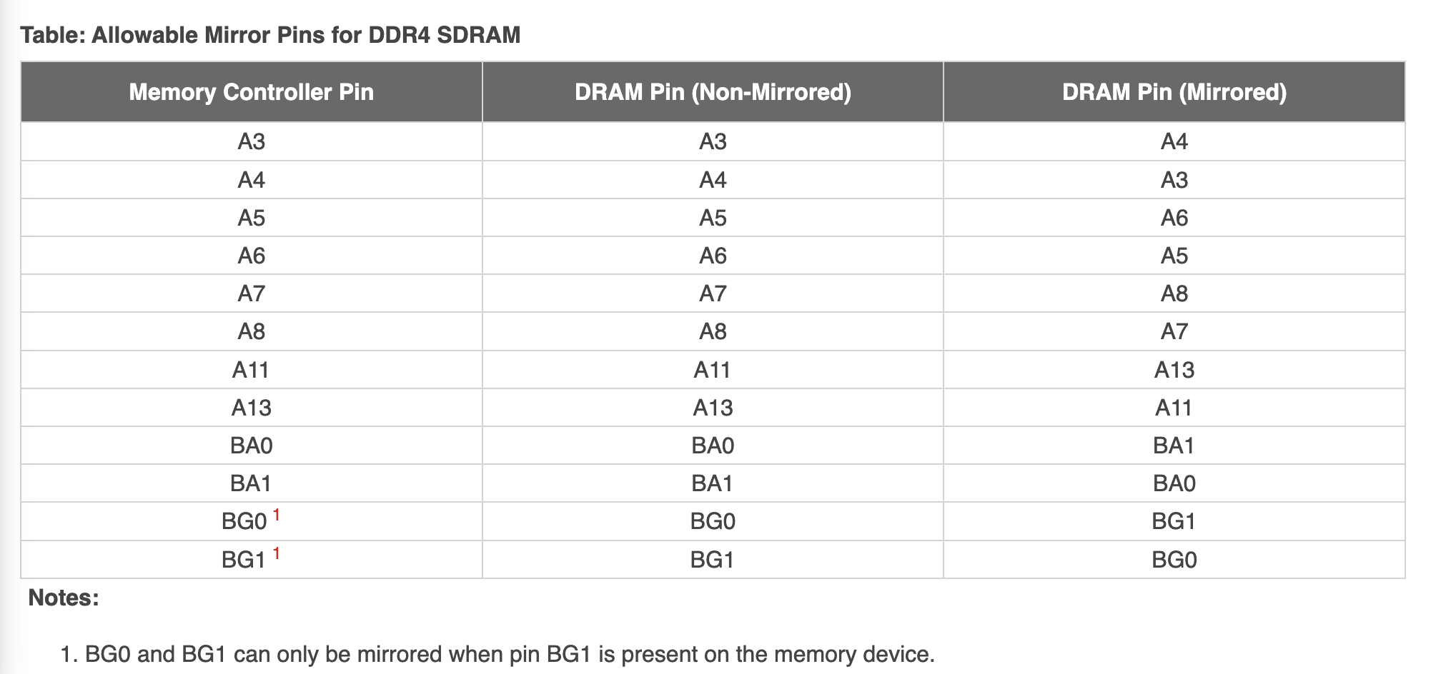 The table deliberately selects pins to swap that do not affect special functions, making most functions, even with swapped pins, work properly. For example, if the Row address is swapped by a few bits, it does not affect reading or writing data, although the physical storage place is changed. However, for Mode Register Set operations, the memory controller must swap the order of the bits itself and swap them back when connecting on the PCB to ensure the correct result on the SDRAM side.
