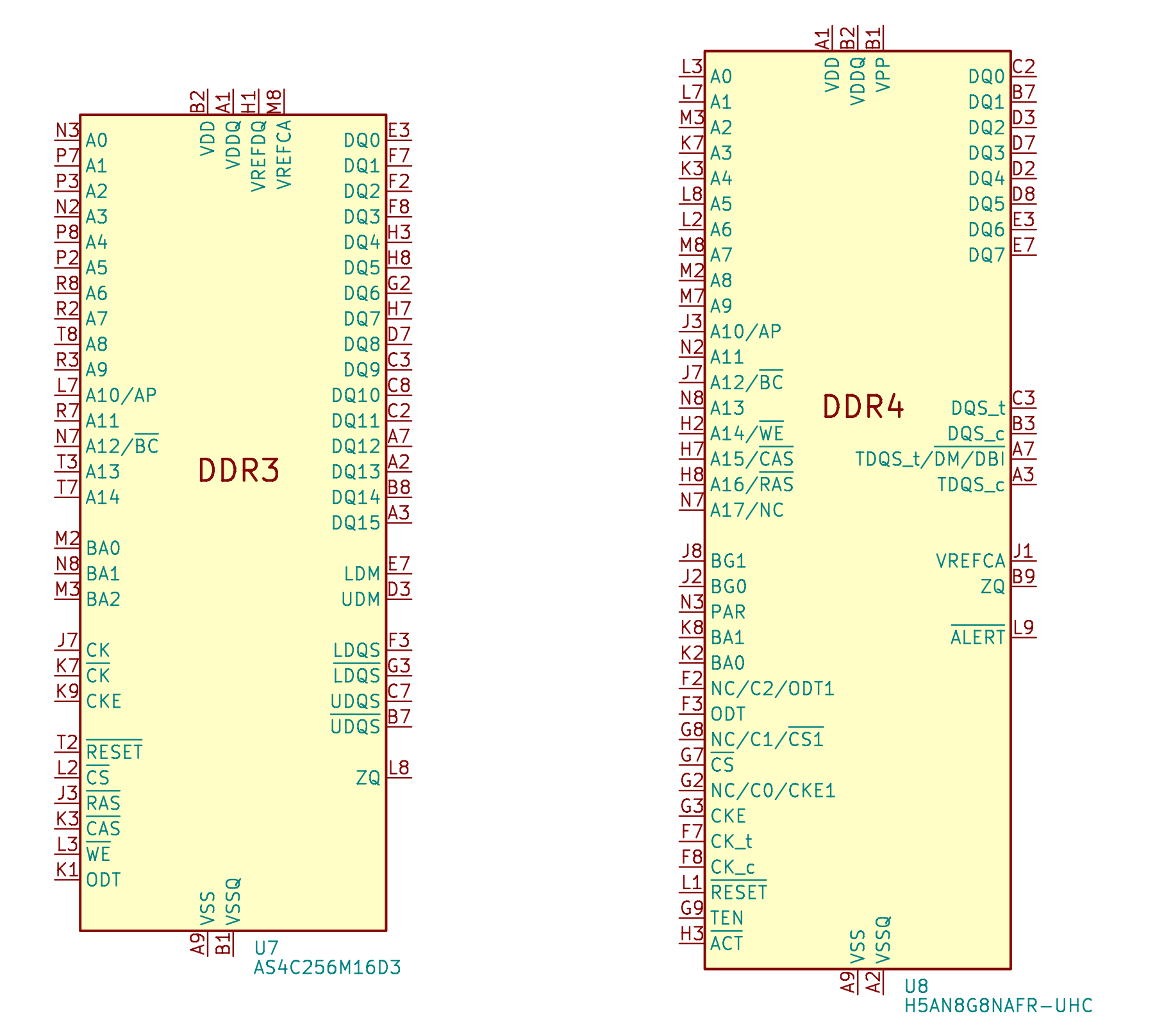 - address signal: DDR3 has A0-A14, DDR4 has A0-A17, where A14-A16 are multiplexed pins